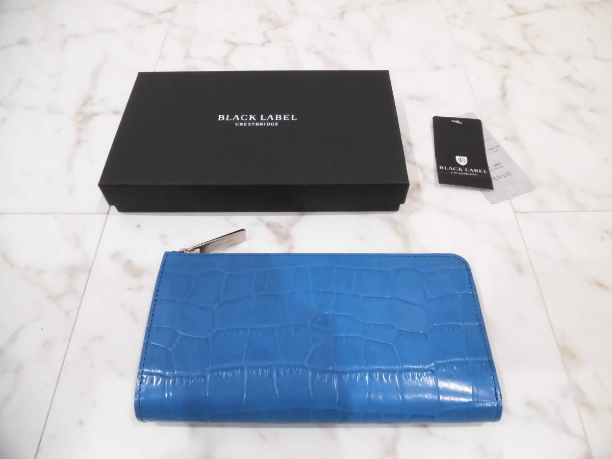 - 【新品未使用品タグ箱付】 ブラックレーベルクレストブリッジ 長財布 定価31,900円 BLACK LABEL CRESTBRIDGE ライトブルー 正規品 牛革