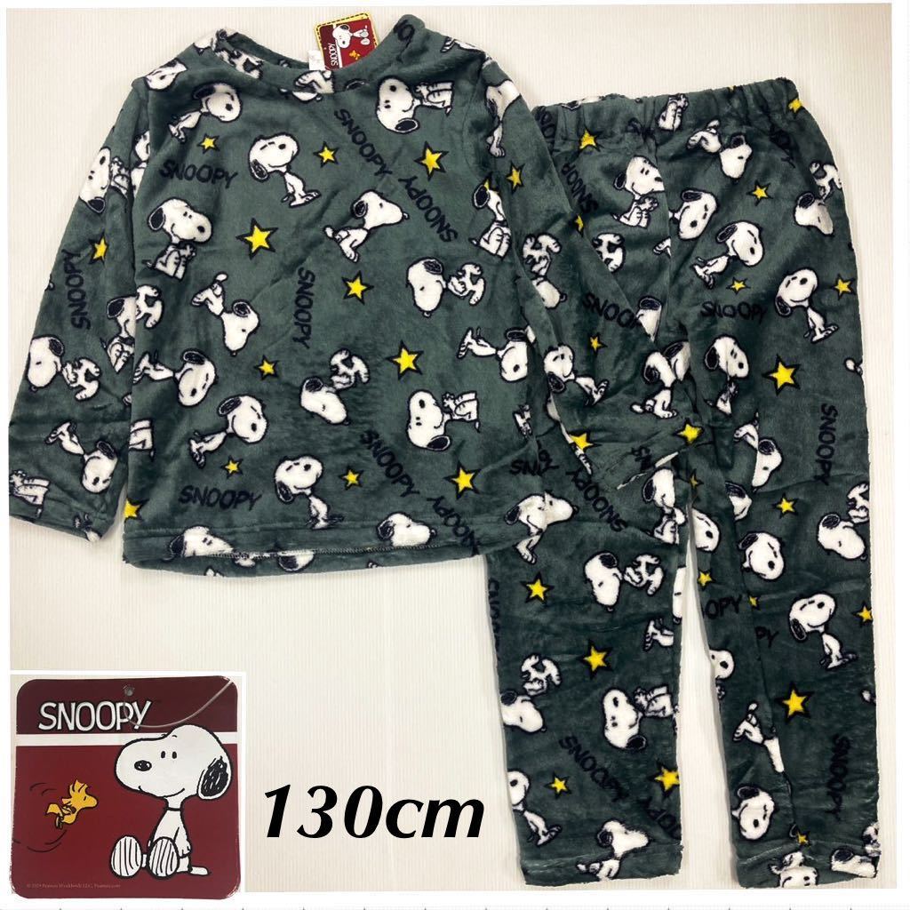 - 新品62072 スヌーピー130cm ダークグリーン ジュニアフリース丸首長袖パジャマかぶりフランネルパジャマルームウェアあったか素材男女兼用