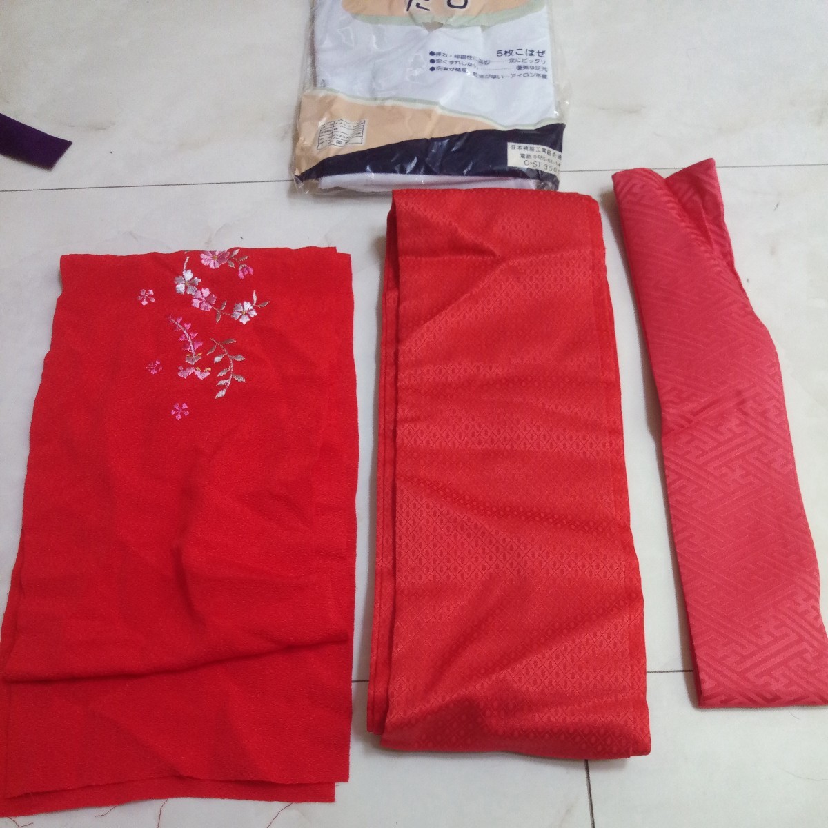 - 着物☆半襟☆刺繍☆重ね襟☆振袖☆重ね衿☆伊達衿☆ストレッチたび☆まとめて☆ リメイク☆赤レッド