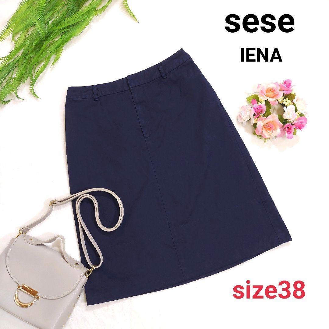 - sese コットン素材 スカート 膝丈 ダークネイビー 台形 表記サイズ38 M イエナ IENA 79278