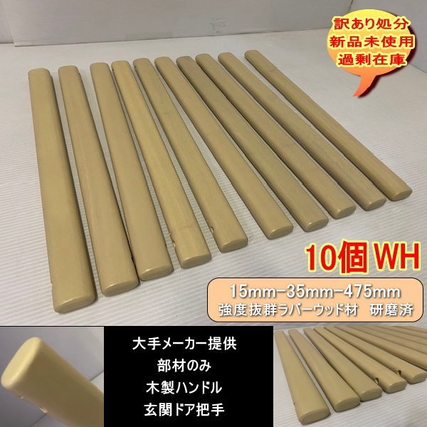 > 玄関ドア把手 楕円形 木製 10本セット WH ホワイト ラバーウッド 無垢材 強度抜群 15-35-475mm 送料無料 訳あり処分