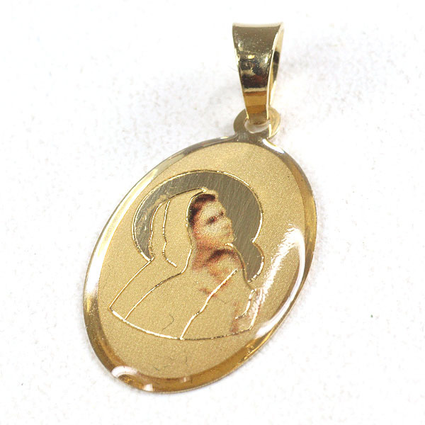 - K18YG 聖母子像 メダイ ペンダントトップ 750YG/レジン 0.7g オーバル チャーム お守り 未使用品
