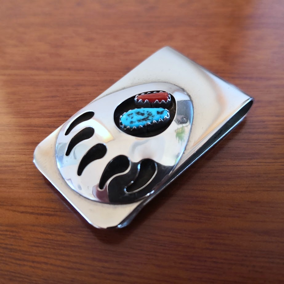 - ネイティブデザイン マネークリップ ベアーフット インディアンターコイズ コラール 山珊瑚