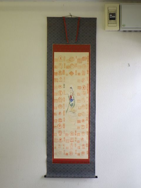 - h4K152Z- 掛軸 西国三十三ヶ所観音霊場 御朱印 春祥銘 絹本 箱無