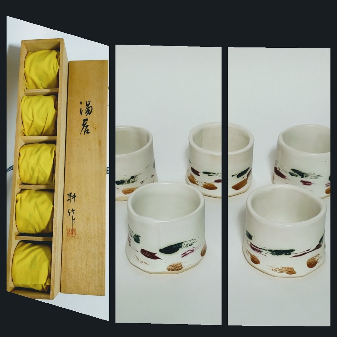 - 新品 ★ 湯呑 5個セット 山田耕作 東華窯 陶芸 陶器 焼物 工芸品 万古焼 共箱 茶道具 共箱 ★199