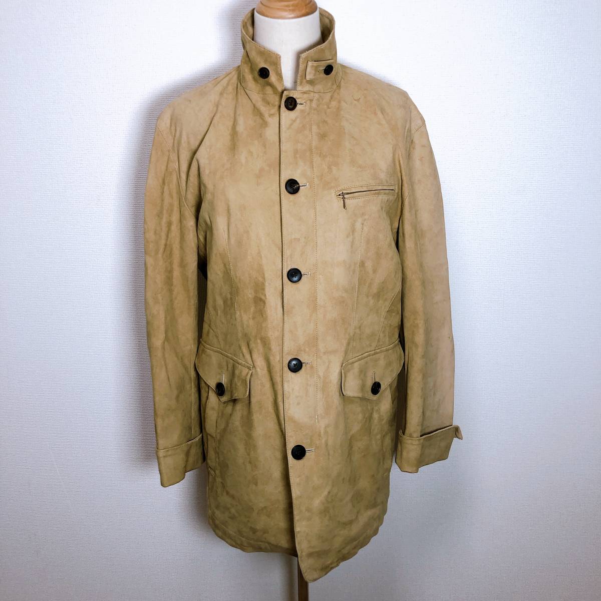 > WS0360 レア D'URBAN ダーバン メンズ レザージャケット 長袖 カジュアル M ベージュ 無地 エコレザー 万能 男前 エコレザー SDGs 人工皮革