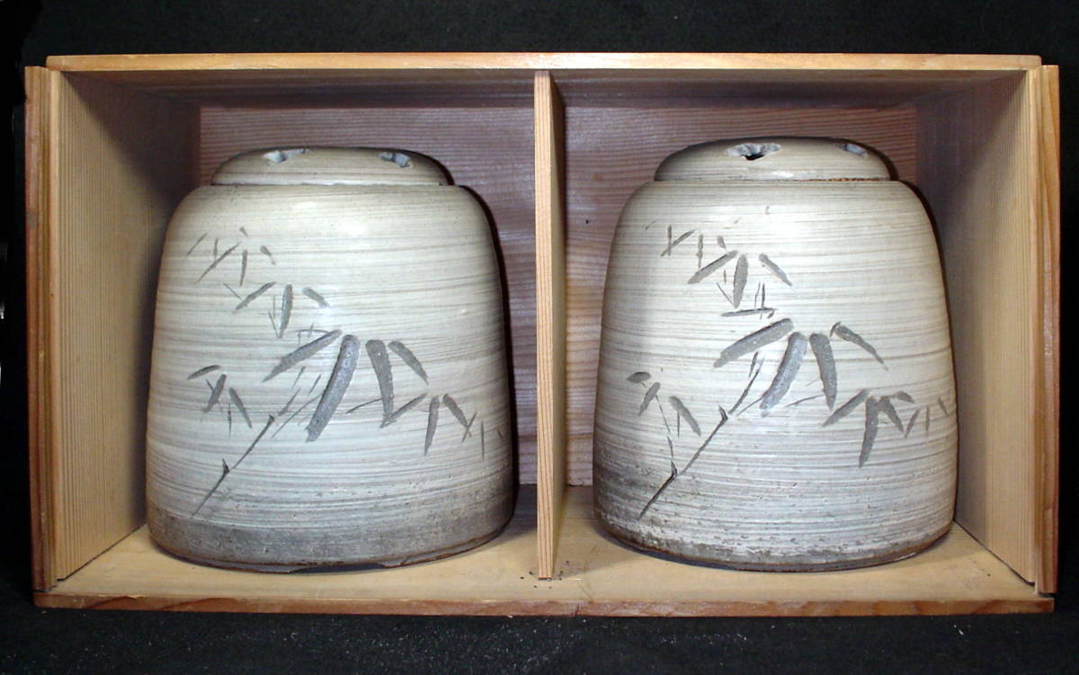 - 竹彫 手焙 小型火鉢 2個 平安 与し三 造