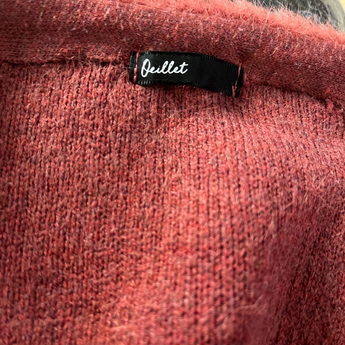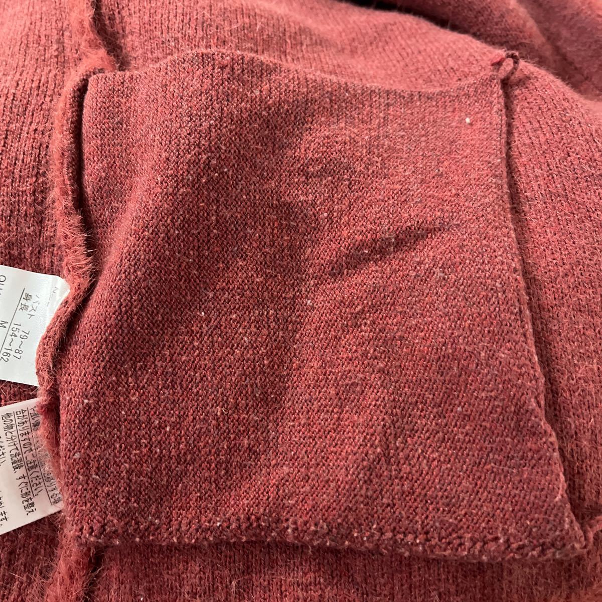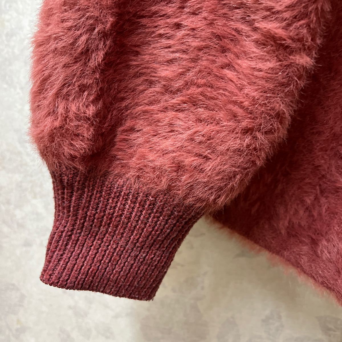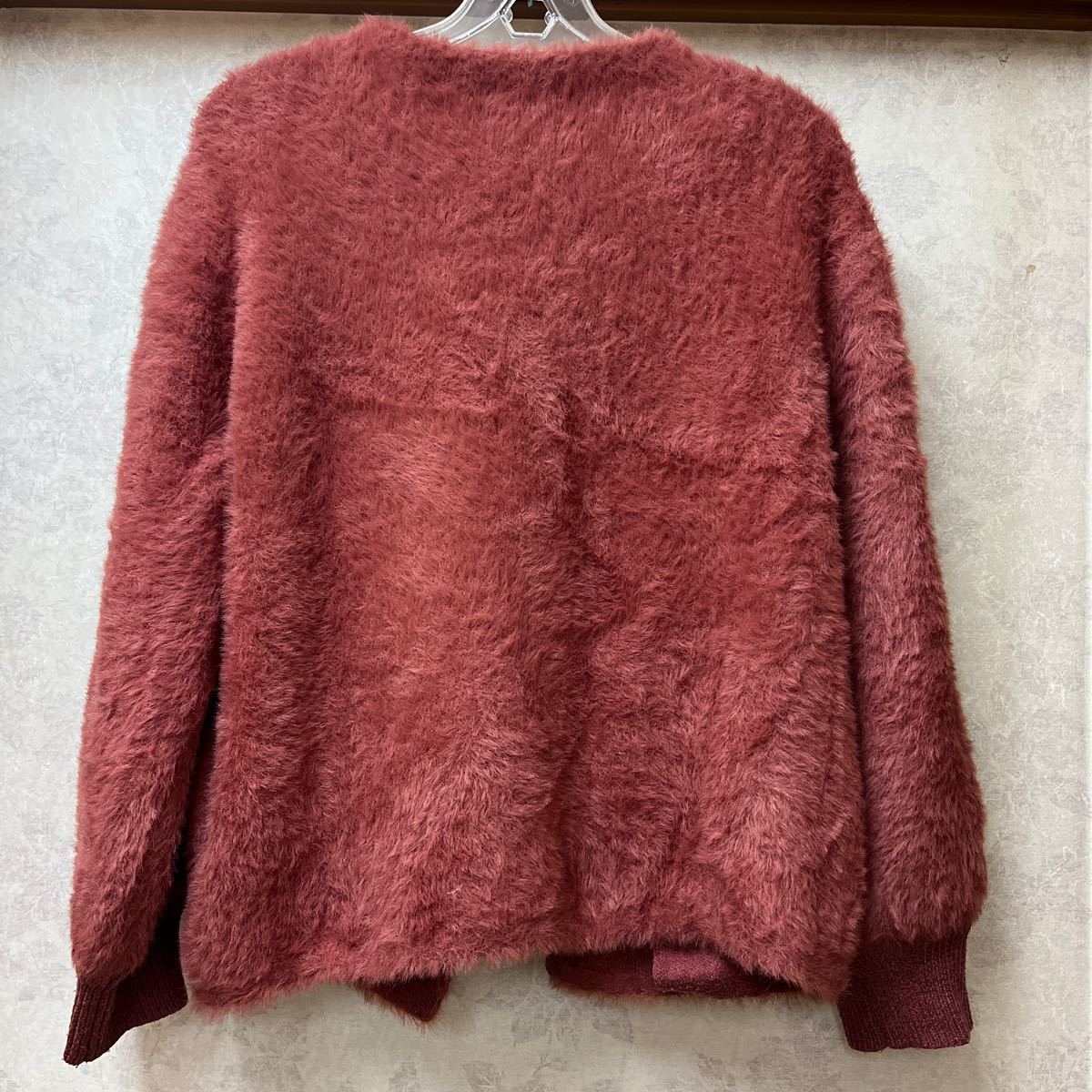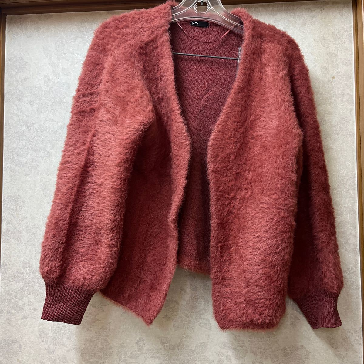 > ★oeillet★ウイエ 長袖 カーディガン ファーボレロ M ダークピンク 両脇にポケット付き ナイロン65%ポリエステル35% もこもこふんわり袖