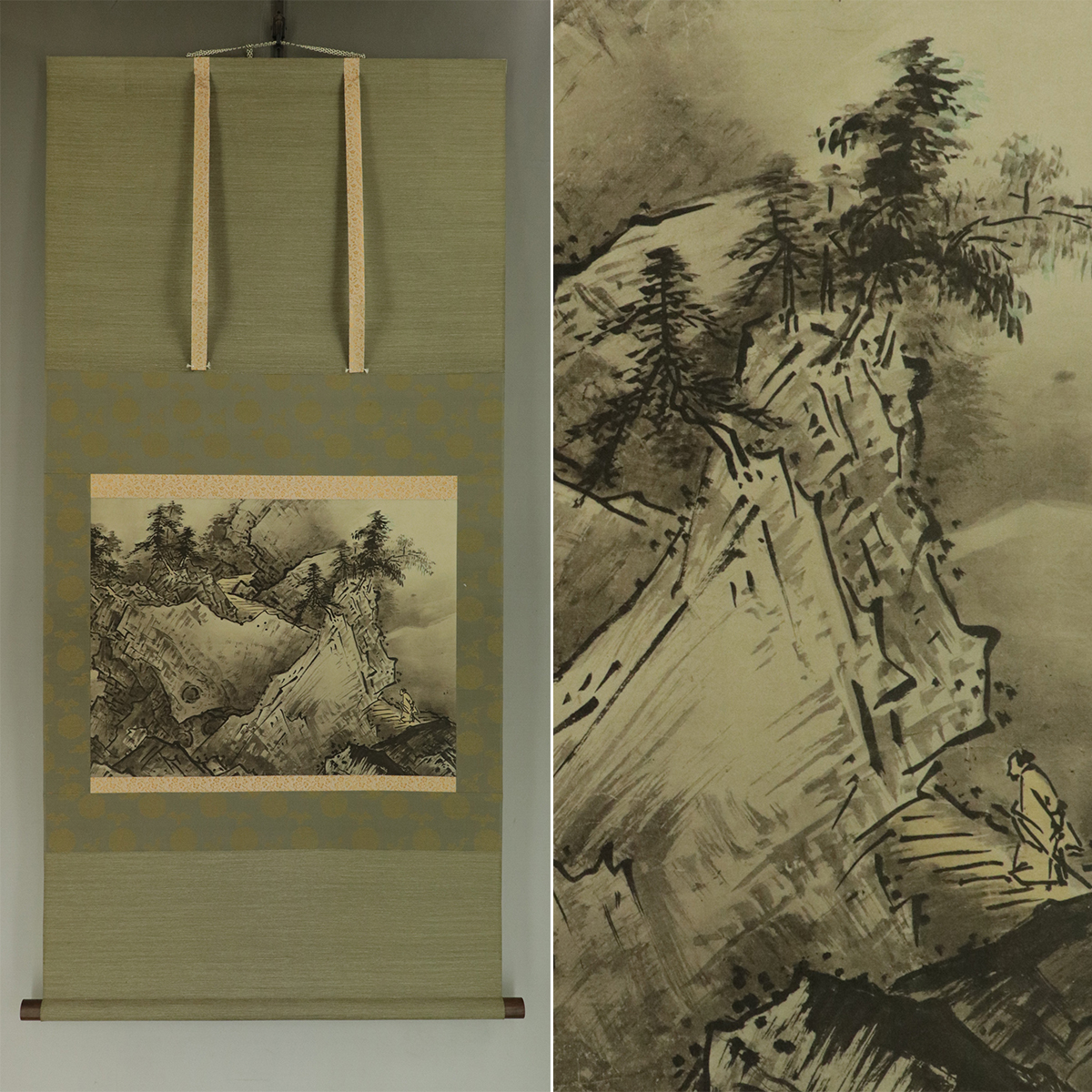 - 【巧芸】雪舟【四季山水 秋景図】◆紙本◆共箱◆掛軸 u10135c