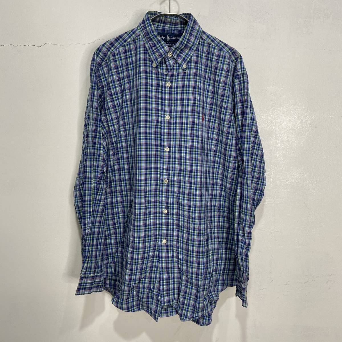 - 送料無料☆RalphLauren☆ラルフローレン☆チェック柄長袖ボタンダウンシャツ☆ポニーマーク☆クラシックフィット☆ブルー☆M☆K23