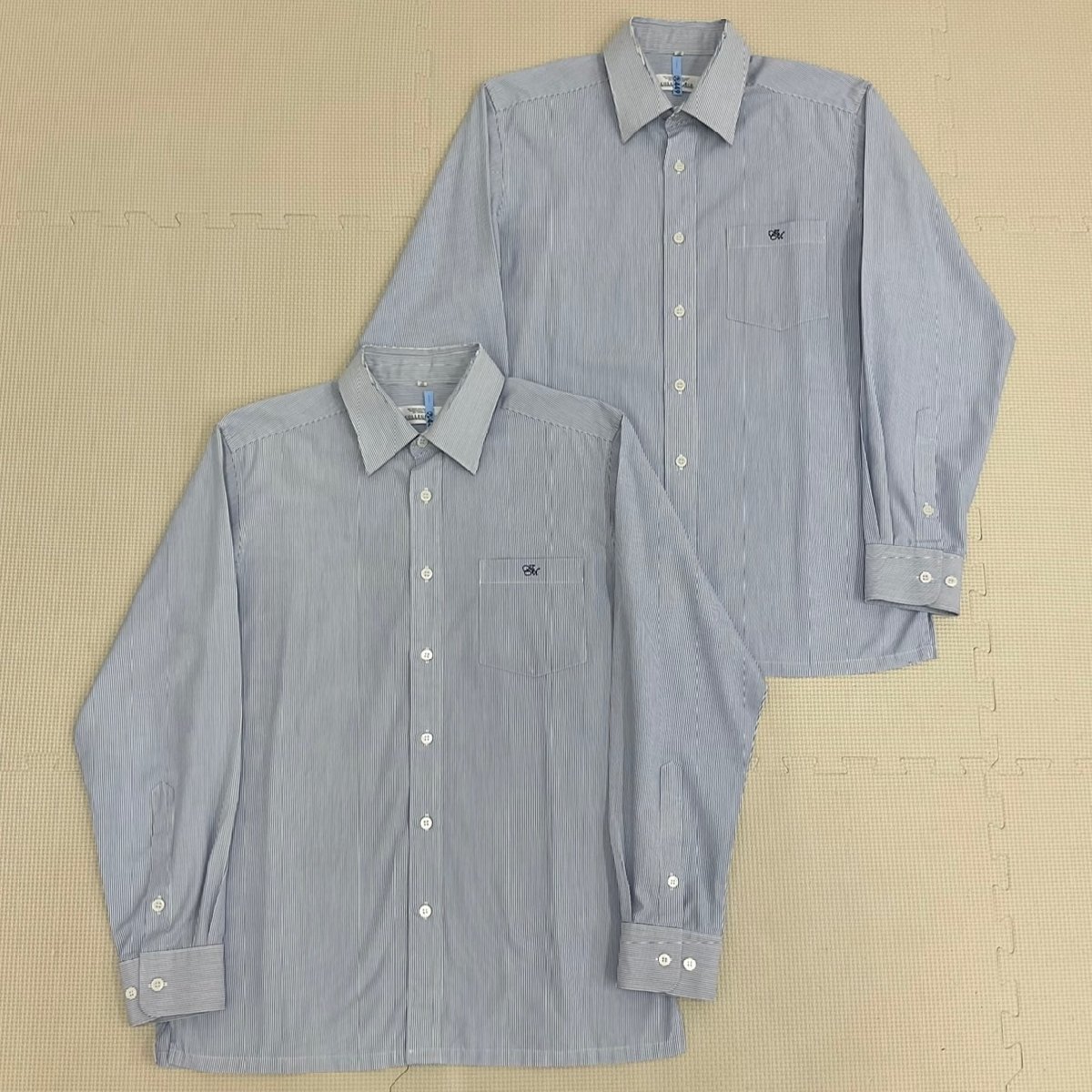 - U215/T (中古) 栃木県 鹿沼南高校 男子制服 2点 /M/長袖/ワイシャツ/白×青/ストライプ/COLLEGEACE/冬服/冬用/男子学生/学生服/卒業生品/