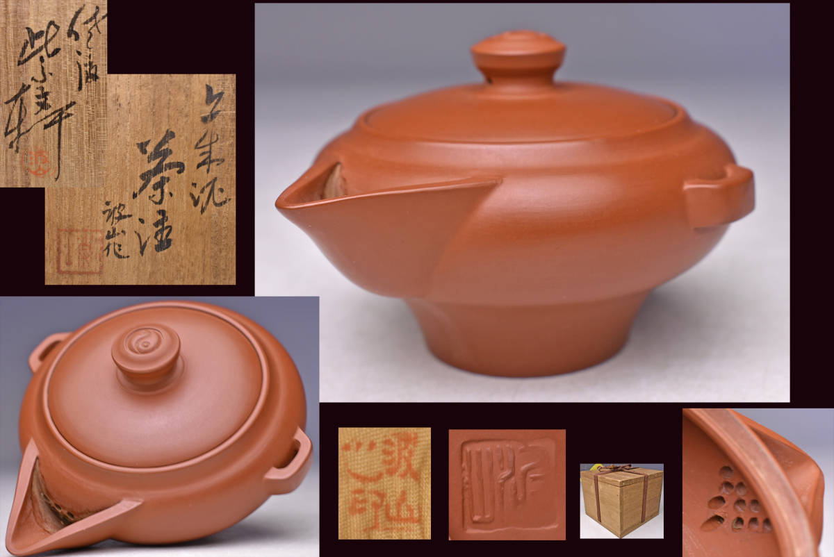 > 藤井波山 ★ 朱泥茶注 ★ 共箱 ★ 希少 ★ 新潟 佐渡ヶ島 ★ 三浦常山 に薫陶受ける ★ 急須 宝瓶 ★ 無名異焼 ★ 煎茶道具