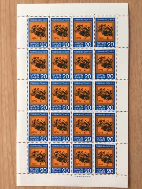 - 1974年 万国郵便連合100年記念 20円 1シート(20面) 切手 未使用