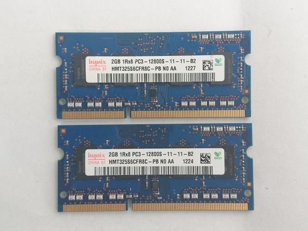 - 中古品★Hynix メモリ 2GB 1Rx8 PC3-12800S-11-11-B2★ 2G×2枚 計4GB
