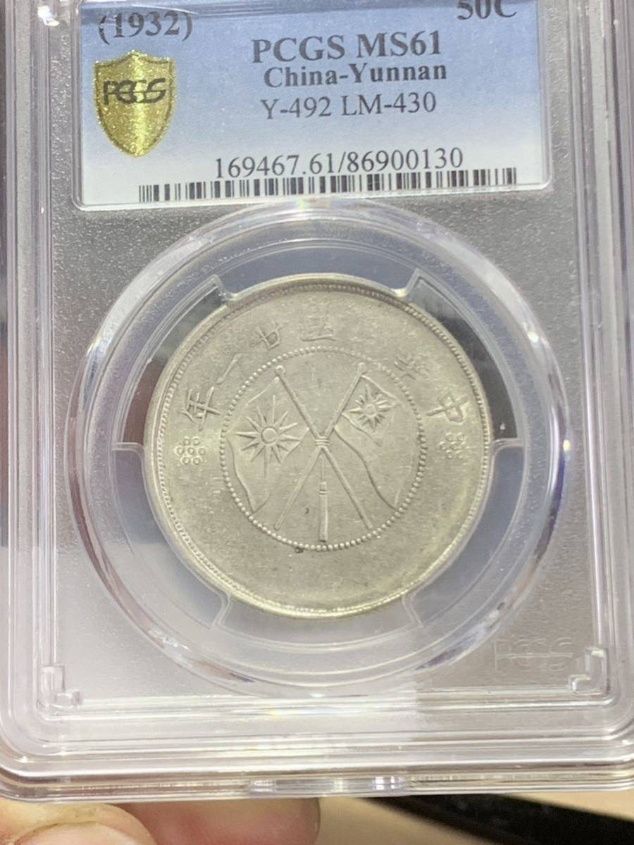 - 中国銀幣 古銭PCGS鑑定済みMS61 雲南省造 中華民国21年 本物保証 美品 収蔵品放出