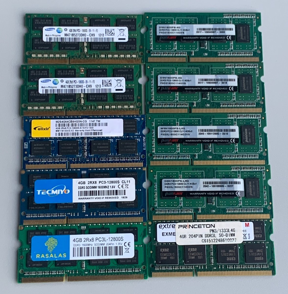 - 【中古/簡易確認】DDR3メモリ 4GB 10枚 メーカー・規格混在 / Samsung Elixir TECMIYO RASALAS Panram PRINCETON / non-ECC Unbuffered