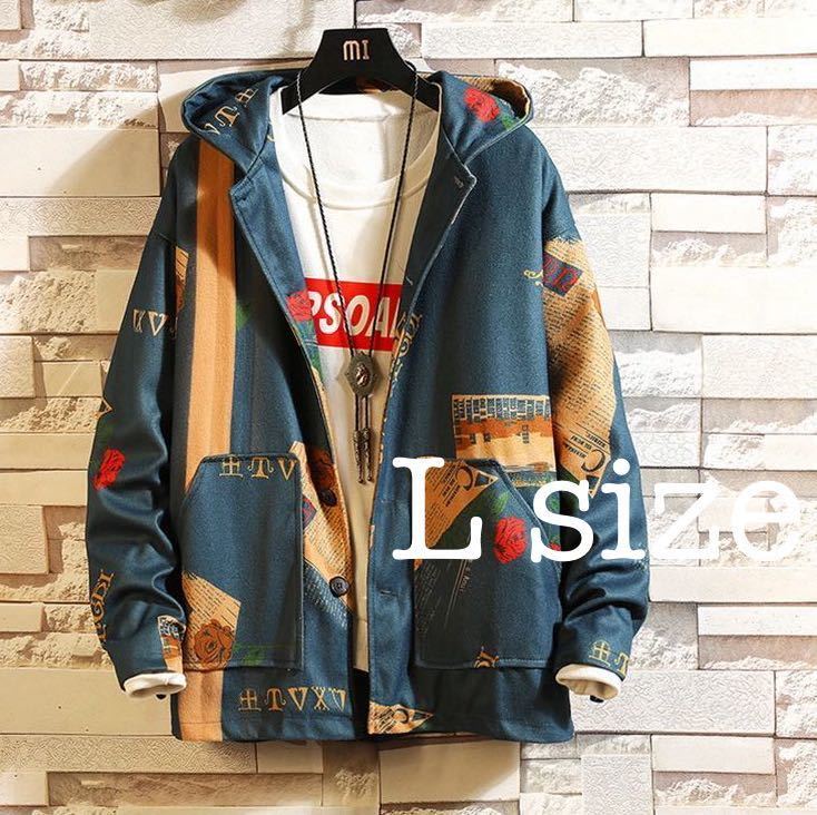 - ビッグシルエット ジャケット パーカー アウター ユニセックス 男女兼用 ブルー 青 L