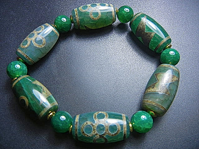 - ★西蔵天珠数珠★JFV2385 緑砂龍紋 五眼稲妻 天珠数珠 13*25mm超勧め