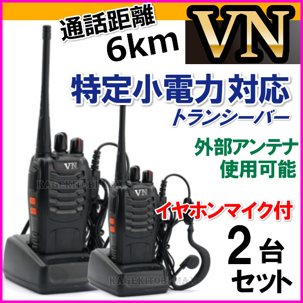 - イヤホンマイク付 2台組/ 特定小電力 対応 トランシーバー 新品 ●免許不要の ケンウッド アルインコ アイコム 交信可能◆VN-過激飛びMAX