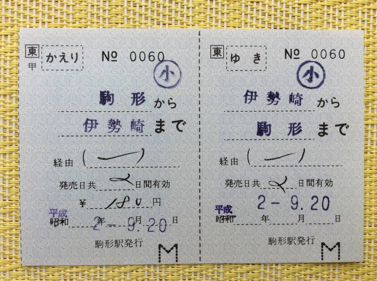 - JR東 両毛線 補充往復乗車券 伊勢崎ー駒形 平成2年 他往 駒形駅発行
