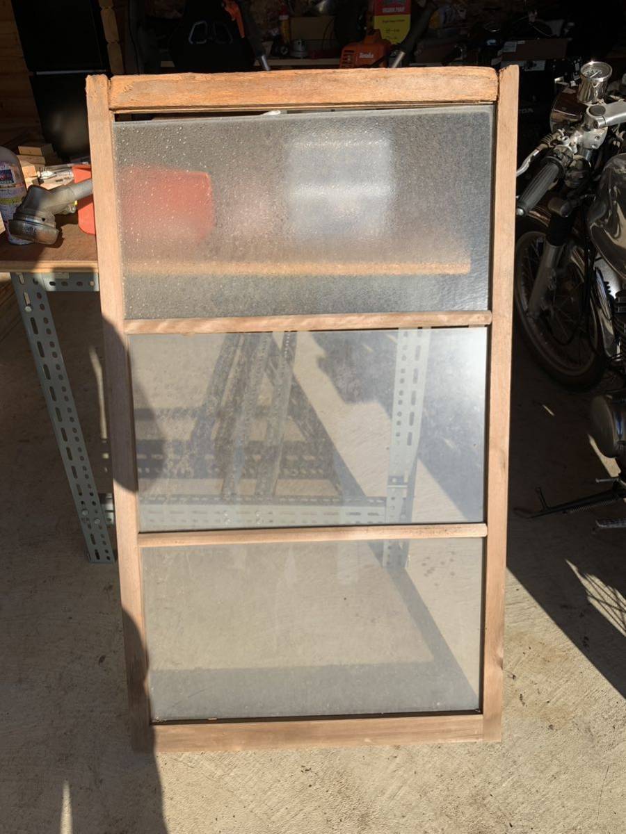 - 【期間限定配送可能】木製サッシ 横67cm、高さ115cm、厚さ3cm 中古 DIY 小屋 アンティーク