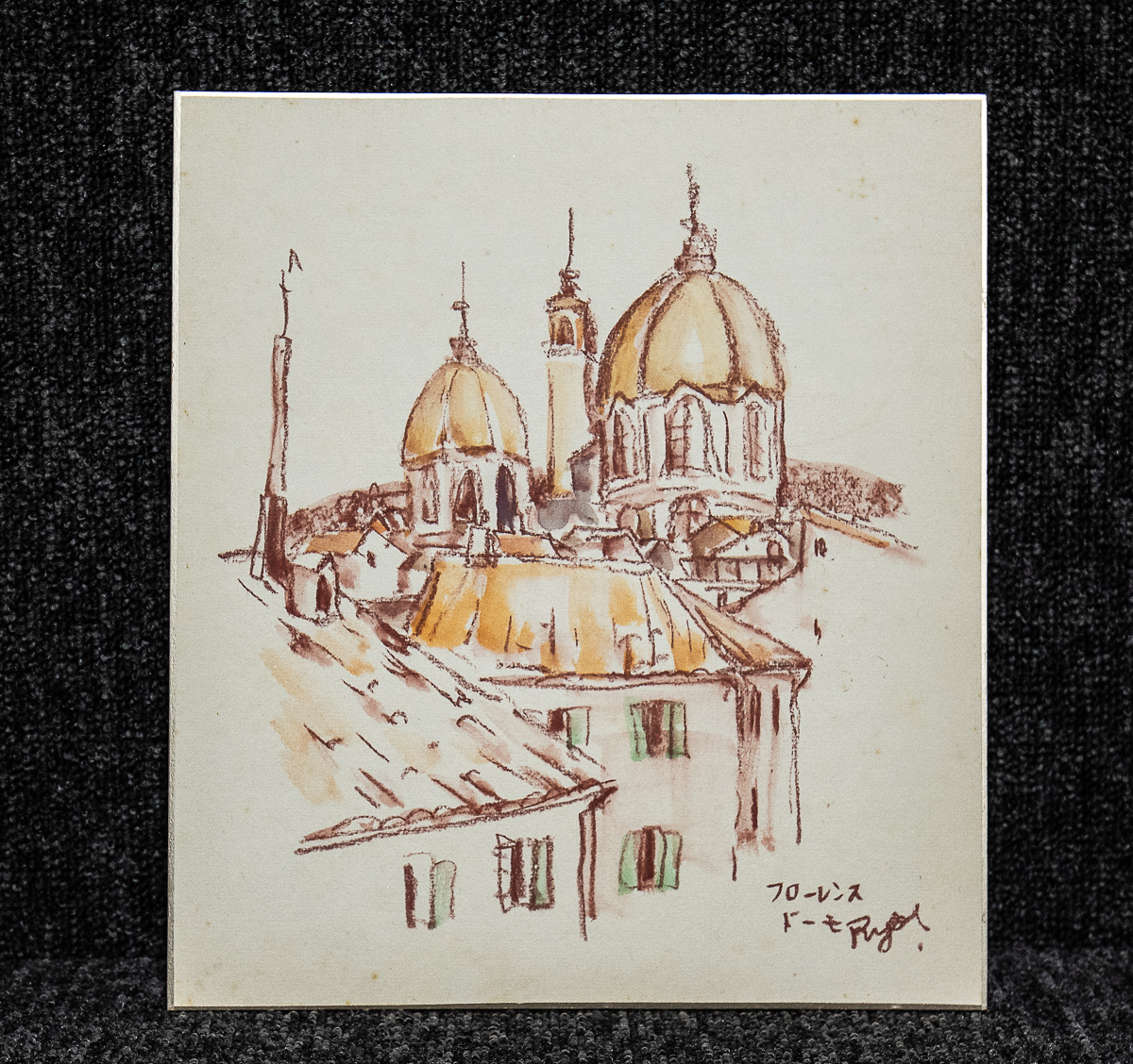 - 色紙ー1031 宇佐川良 イタリア フローレンス サンタマリアディヒオーレ寺を望む 【真作】