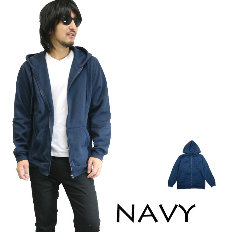 - 裏起毛 ストレッチ ジップパーカー 75362 シンプルデザイン パーカー メンズ 新品ネイビーL