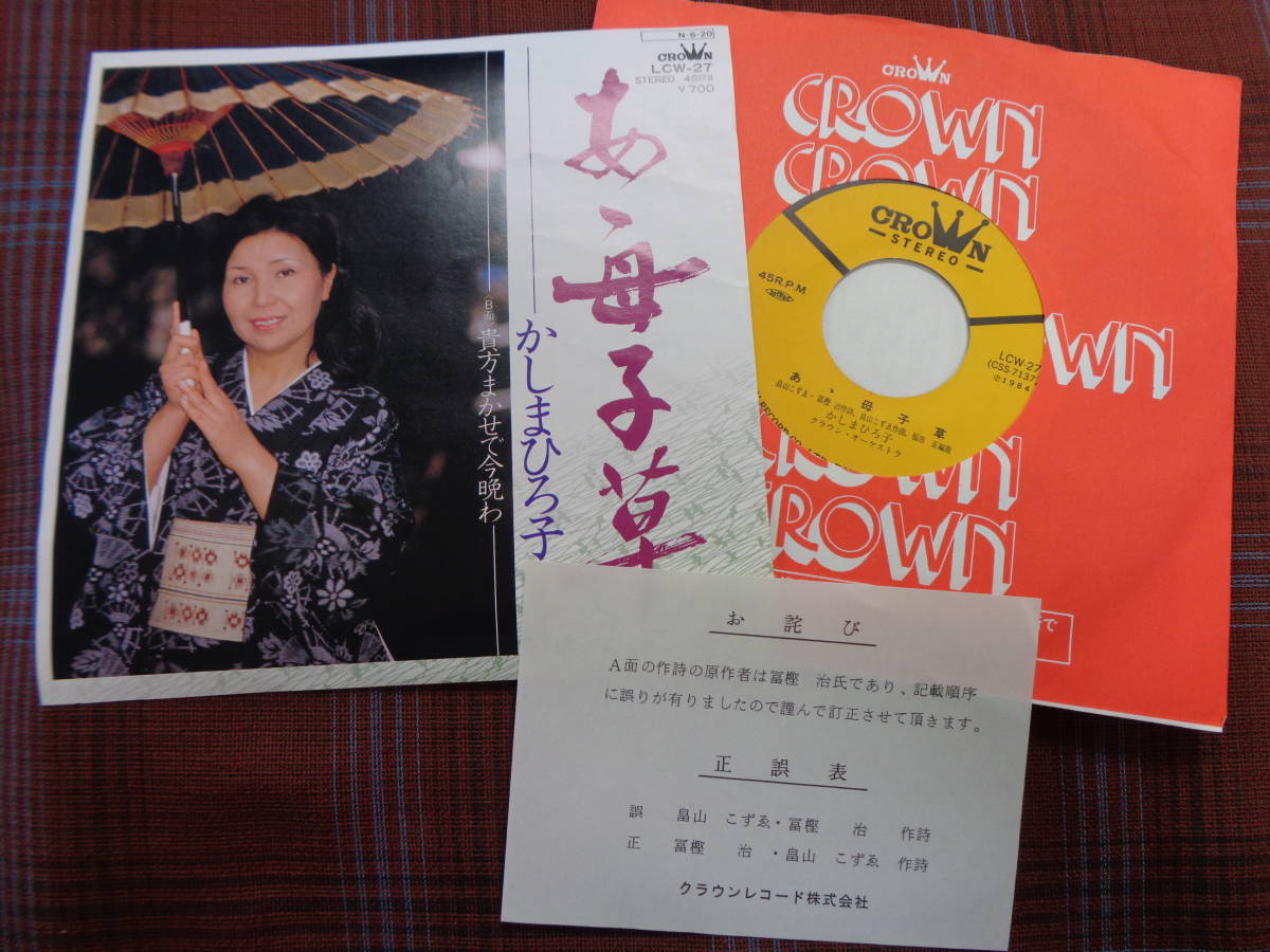 - e#5489◆EP◆ かしまひろ子 - あゝ母子草 / 貴方まかせで今晩わ 昭和 歌謡 マイナー 演歌 音頭 和モノ LCW-27
