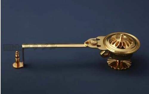 - 極上品 寺院用仏具 太子型柄香炉 真鍮製 真宗 密教法具