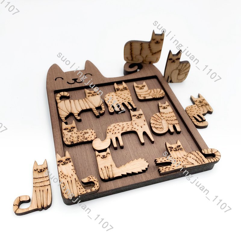 - 木製パズル 木製ジグソーパズル 子供 脳トレおもちゃ 木製 猫パズル 知育玩具 猫の雑貨 #0435