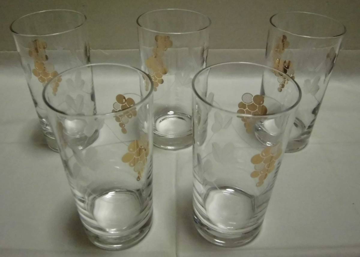 > タンブラーグラス アデリアガラス 葡萄柄 切子 5客 石塚硝子 ぶどう カット硝子 金彩 ビール ウィスキー水割り 酒器 カップ コップ 工芸品