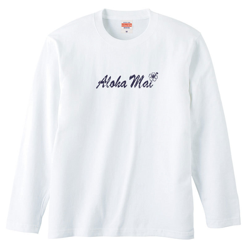 - レディースM対応(タグ表記男女兼用S)/ホワイト*カレッジ風ロゴプリント*長袖/Tシャツ/フラダンス/ハワイ/送料無料【tl101】