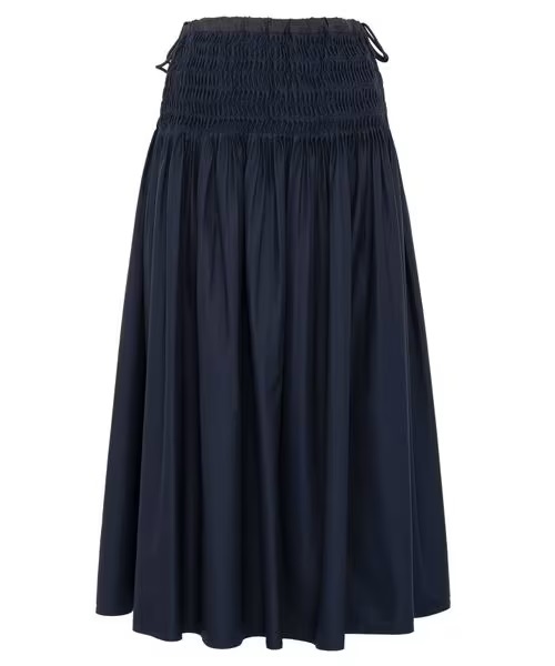 > 完売人気モデル★定価13万超★ドゥロワー★シャリーングロングスカート紺ギャザーギャバジンプリーツスカート張りある光沢薄手ウールDRAWER