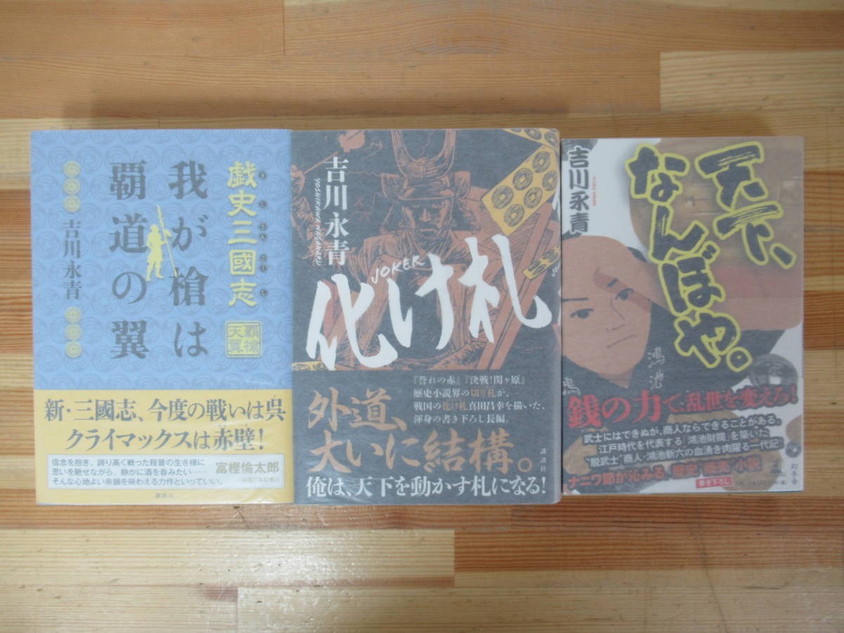 > r45●【吉川永青サイン本 3冊】化け札/天下、なんぼや。/我が槍は覇道の翼 全初版 帯付 著者直筆■高く翔べ 快商・紀伊國屋文左衛門 230419