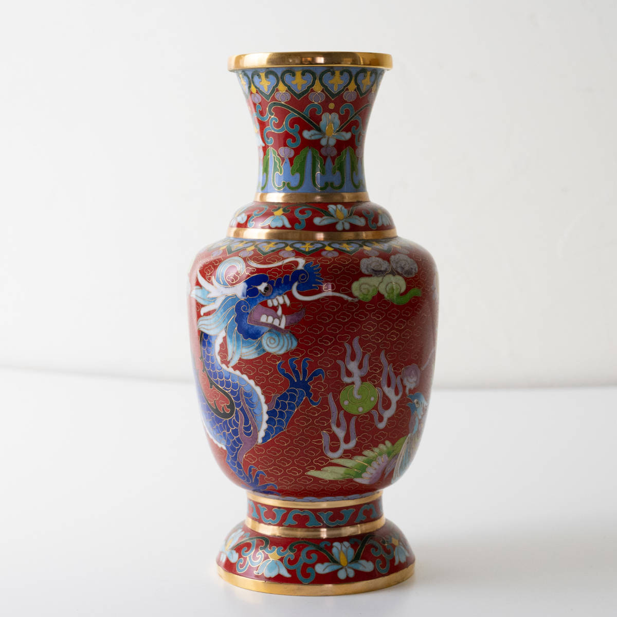 - 中国工芸 龍 孔雀 七宝焼 花瓶 オブジェ ドラゴン 花器 アンティーク