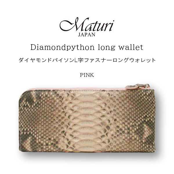> Maturi マトゥーリ ダイヤモンドパイソン 本革 L字ファスナー 長財布 MR-090 PK ピンク 定価37800円 新品