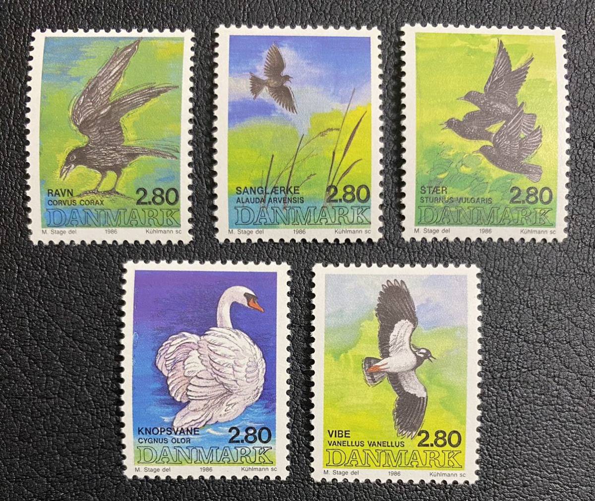 - デンマーク 鳥 ワタリガラス ヒバリ ホシムクドリ コブハクチョウ タゲリ 5種完 未使用 NH