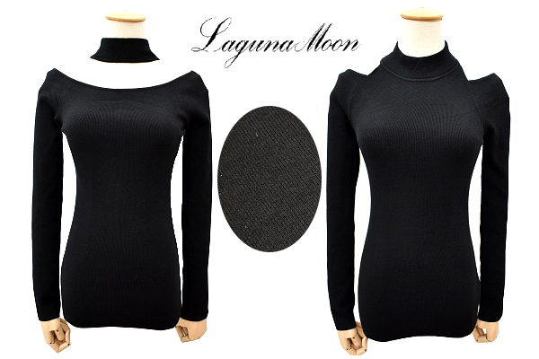 > Y-7030★送料無料★新品★LAGUNAMOON ラグナムーン★定価11000円 黒 2wayセクシー カットアウトニット プルオーバー セーター フリーサイズ