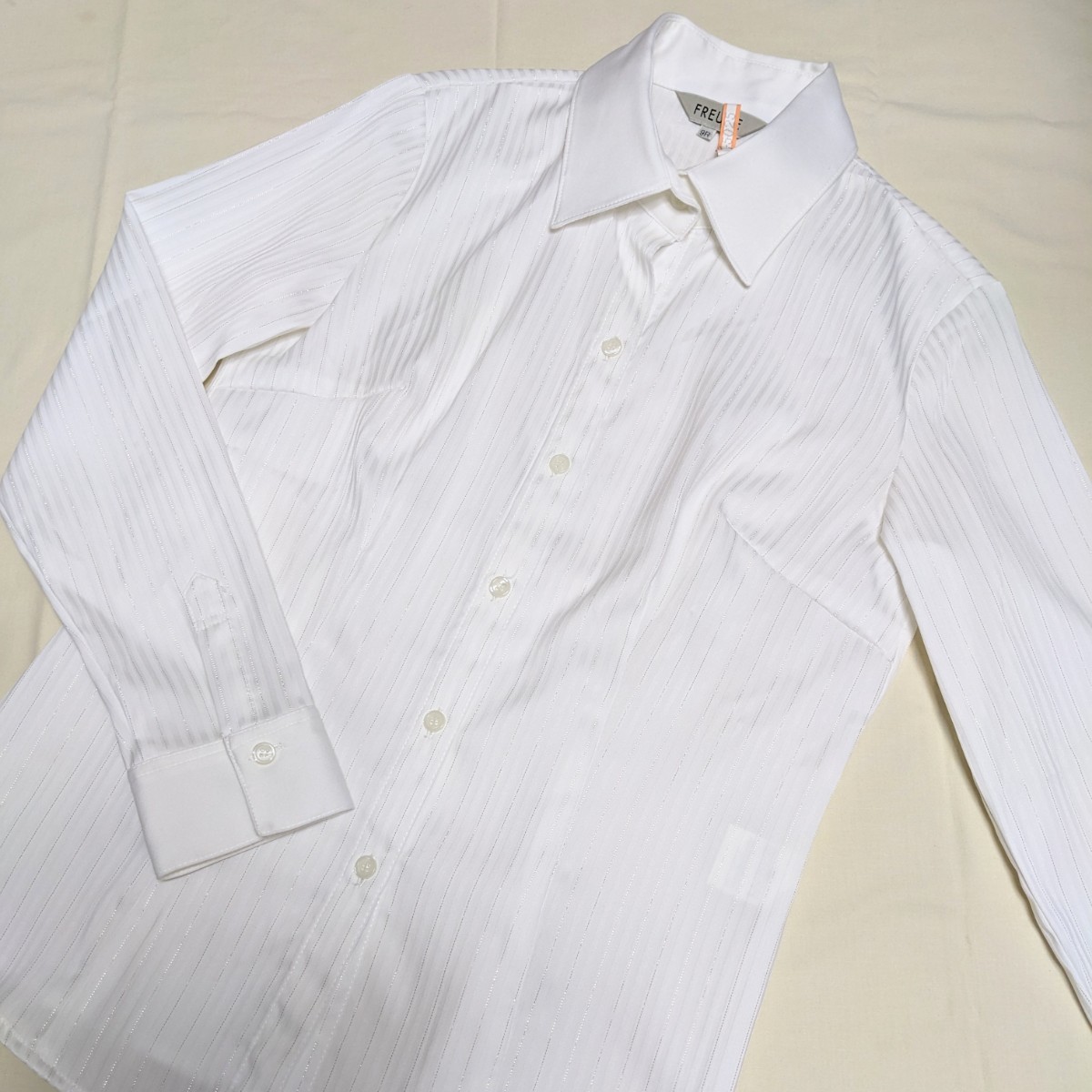 > +FZ156 FREUDE フォーマル レディース 9号 9R 長袖 シャツ ブラウス 白 ストライプ ビジネス セレモニー しまむら