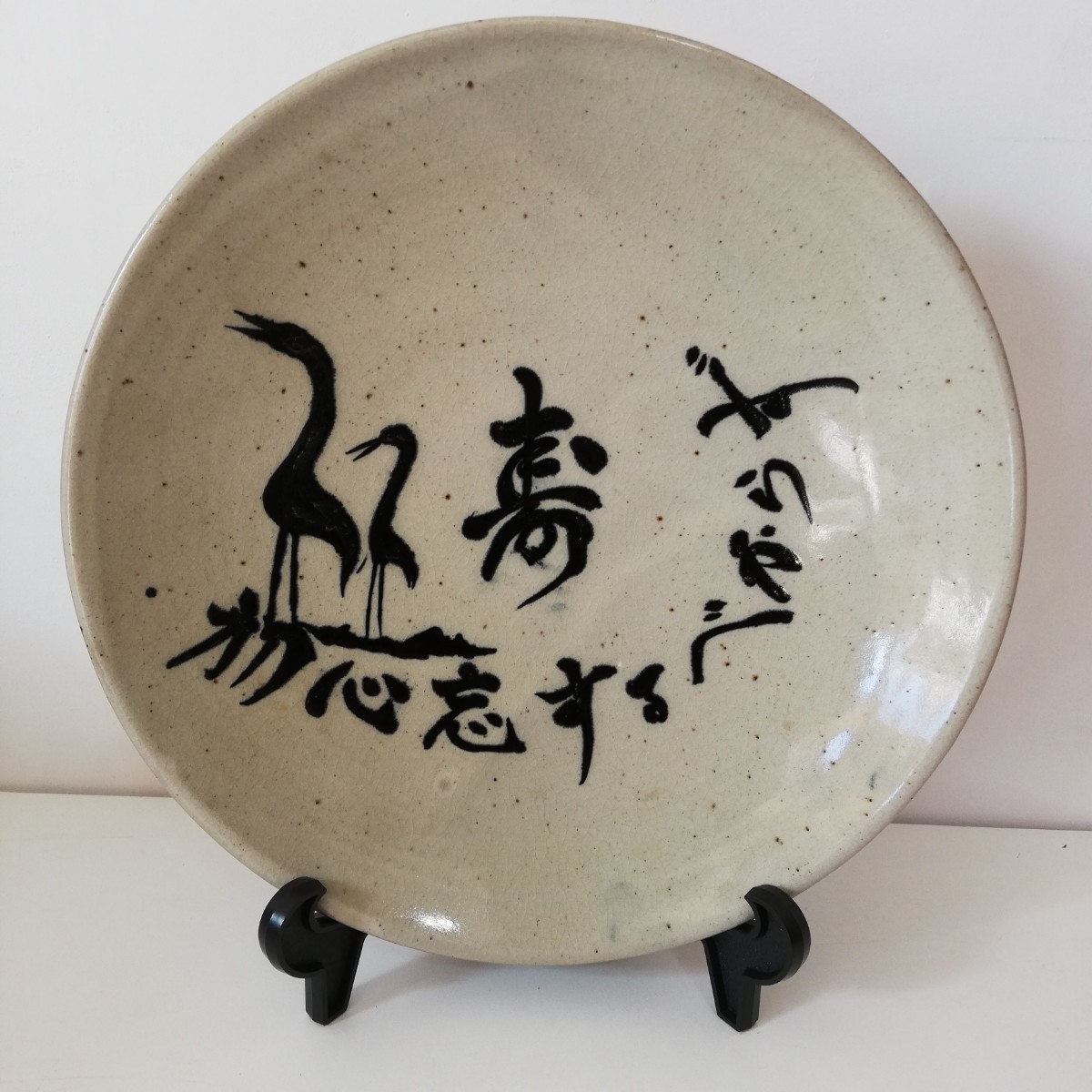- 1960s~1970s 益子焼 並白釉 『初心忘するべからず』 一尺皿 直径31.4cm×高さ5.1cm 未使用品 [大皿 民藝 日本美術 日用雑器 寿]