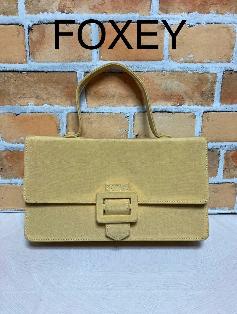 - FOXEY フォクシー 黄色 キャンバスナイロン ハンドバッグ パーティバッグ