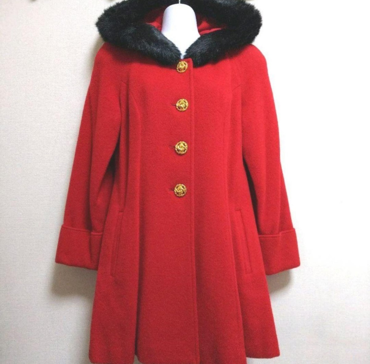 - Aライン フレアーワンピース風コート レッド色 Mサイズ