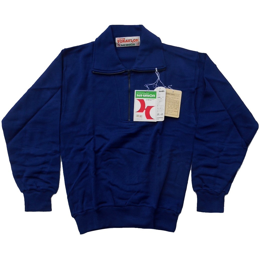 > 未使用 '70s hit-union ヒットユニオン 東レ ジャージ トレーニングシャツ SS ヴィンテージ 日本製 ネイビー XS 当時物 昭和 体育 体操服