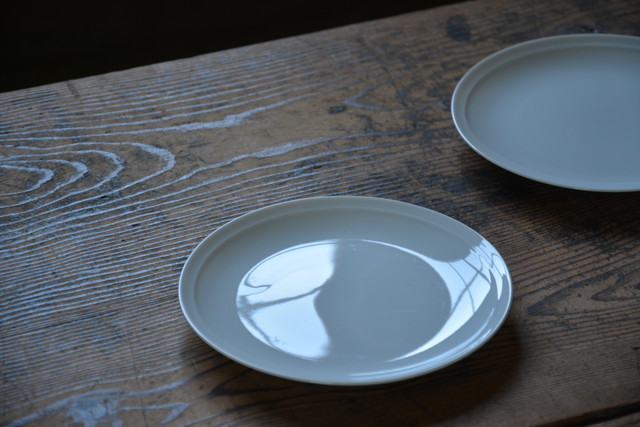 - NO.130 古い白磁のシングルラインプレート 小 2枚SET 未使用品 検索用語→A昭和レトロアンティークヴィンテージ古道具