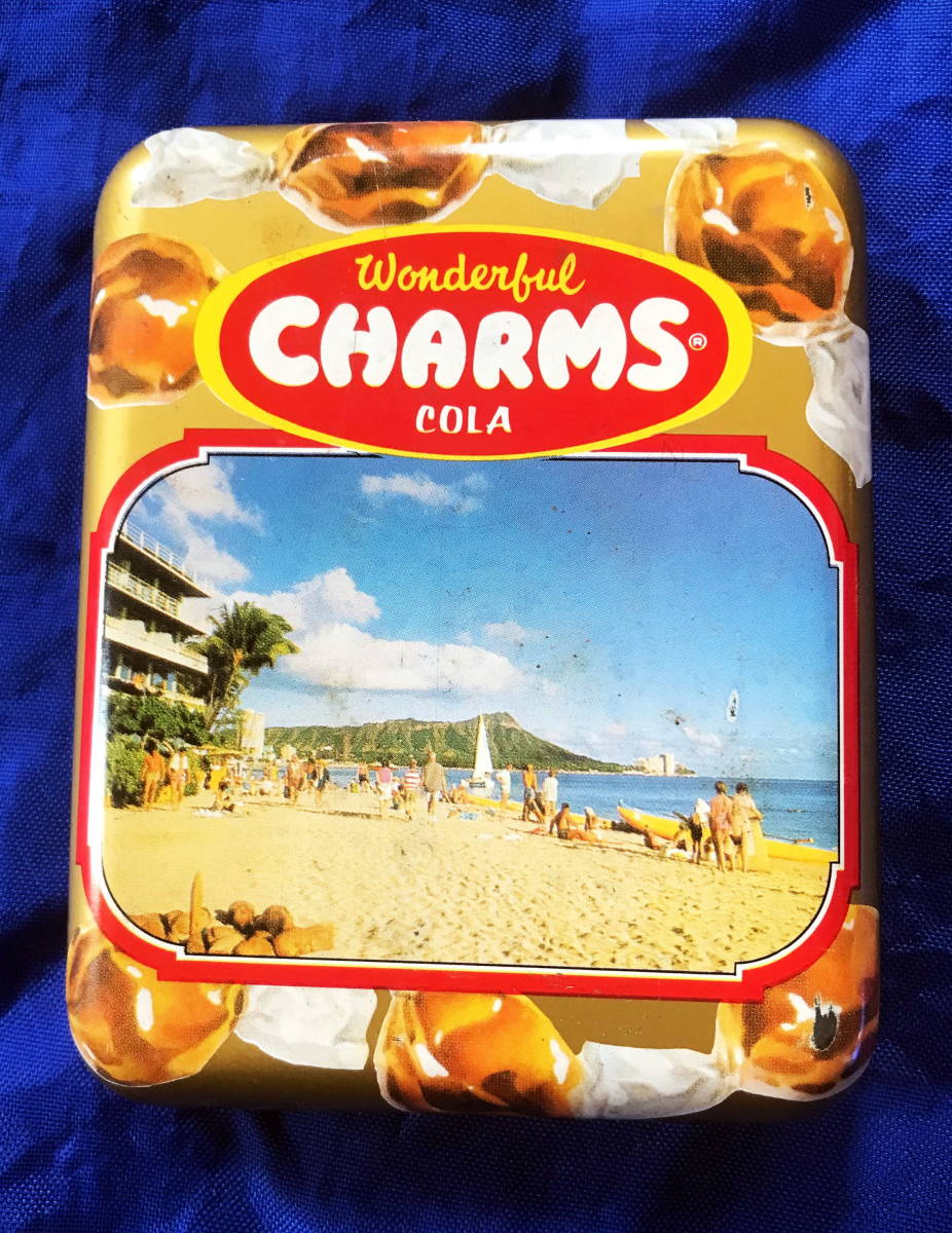 > 【懐かしい/当時物】1960~70年代 Wonderful CHARMS COLA チャームス コーラキャンディ ブリキ製空き缶 ビーチ柄 アンティーク