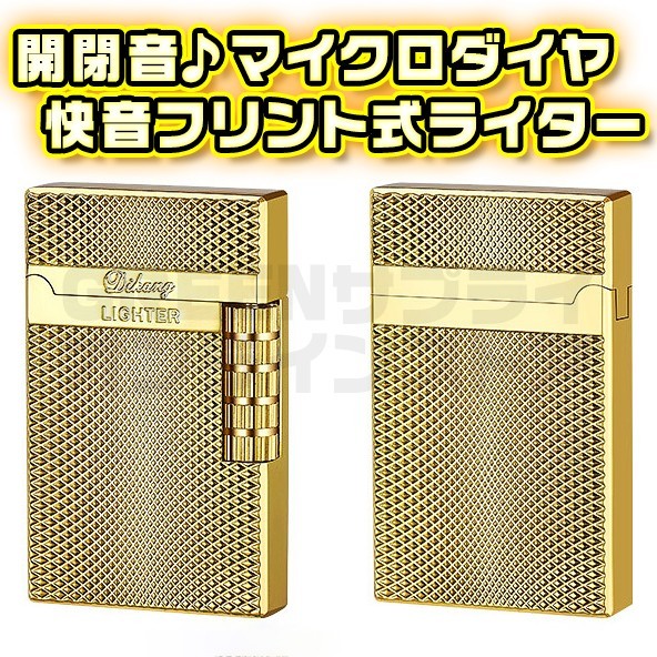 > 両面 マイクロダイヤ ガスライター ゴールド 快音 フリント サイドローラー