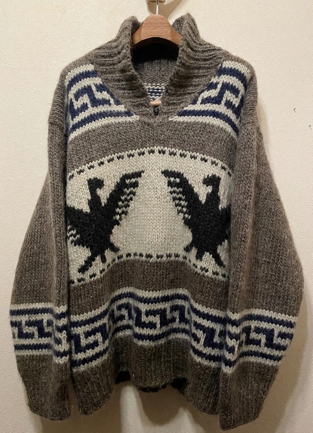 - レア色90sオールド希少サンダーバード柄カウチンセーターLビッグシルエット良質ローゲージ編み毛ハンドニット90年代ネイティブ卍ビンテージ