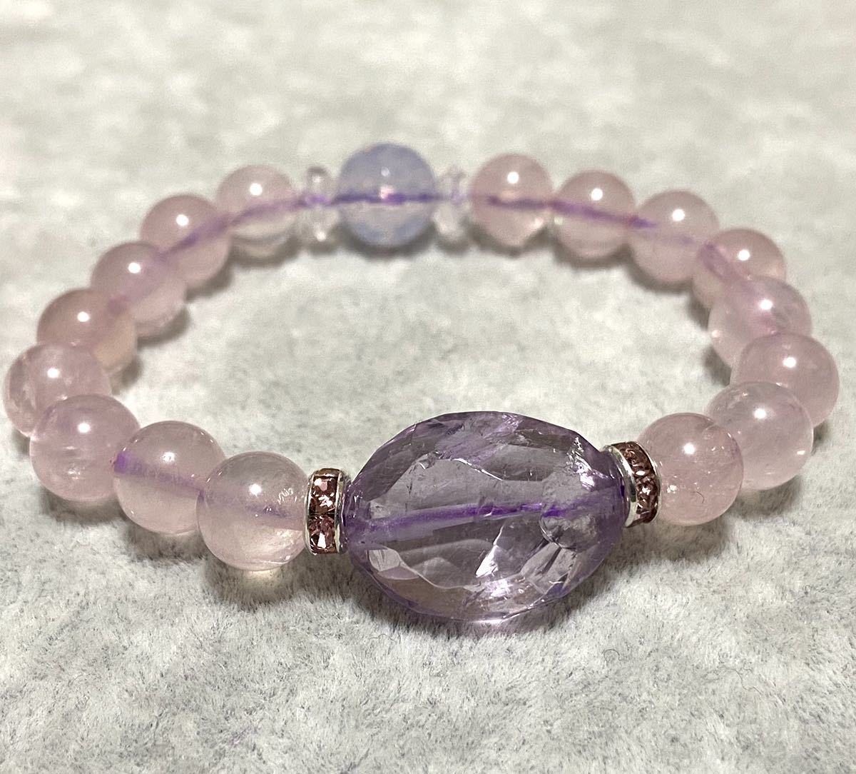 - 天然石パワーストーンブレスレット スコロライト 10mm ローズクォーツ 8mm アメジスト 19mm ロンデル 2mm