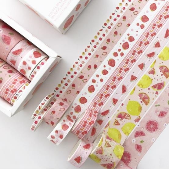 - マスキングテープ 太い 細い 8巻きセット フルーツ レモン いちご さくらんぼ 隙間 コラージュ