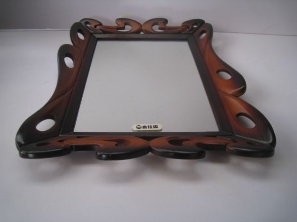 - 木彫りの枠の鏡 レトロ 木枠の鏡 壁掛け サイズ:約49×38.5×厚4㎝ インテリア /21N12.21-78